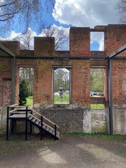 Site: Aldershvile Slotspark is located on the northwestern suburbs of Copenhagen, Denmark. It was originally a country house with a garden, which was unfortunately destroyed in a fire in 1909. In 1927, the municipality purchased the site. Today, Aldershvile is open to the public as a part of the landscaped public park and is the main entrance for visitors to enter the park. Because of the fire, the building structures have become unstable, and the damage and residual deformations that need maintenance. A new and simple steel substructure has been added to reinforce the original structure and a wooden staircase is built which creates a new