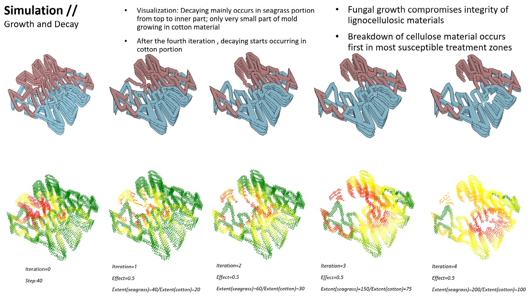 Decaying mainly occurs in seagrass portion from top to inner part; only very small part of mold growing in cotton material