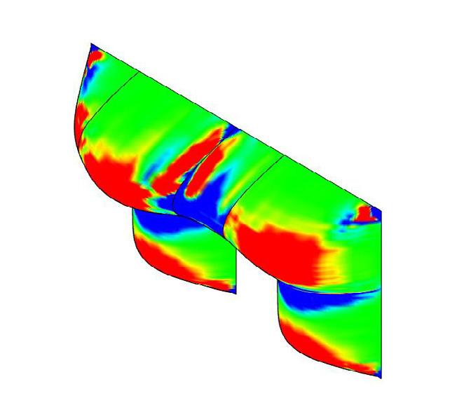 The results show that the rough surface (1) lowers the wind velocity and causes unstable air. Almost the same results are showed on the spiral(2) and straight patterns(3).