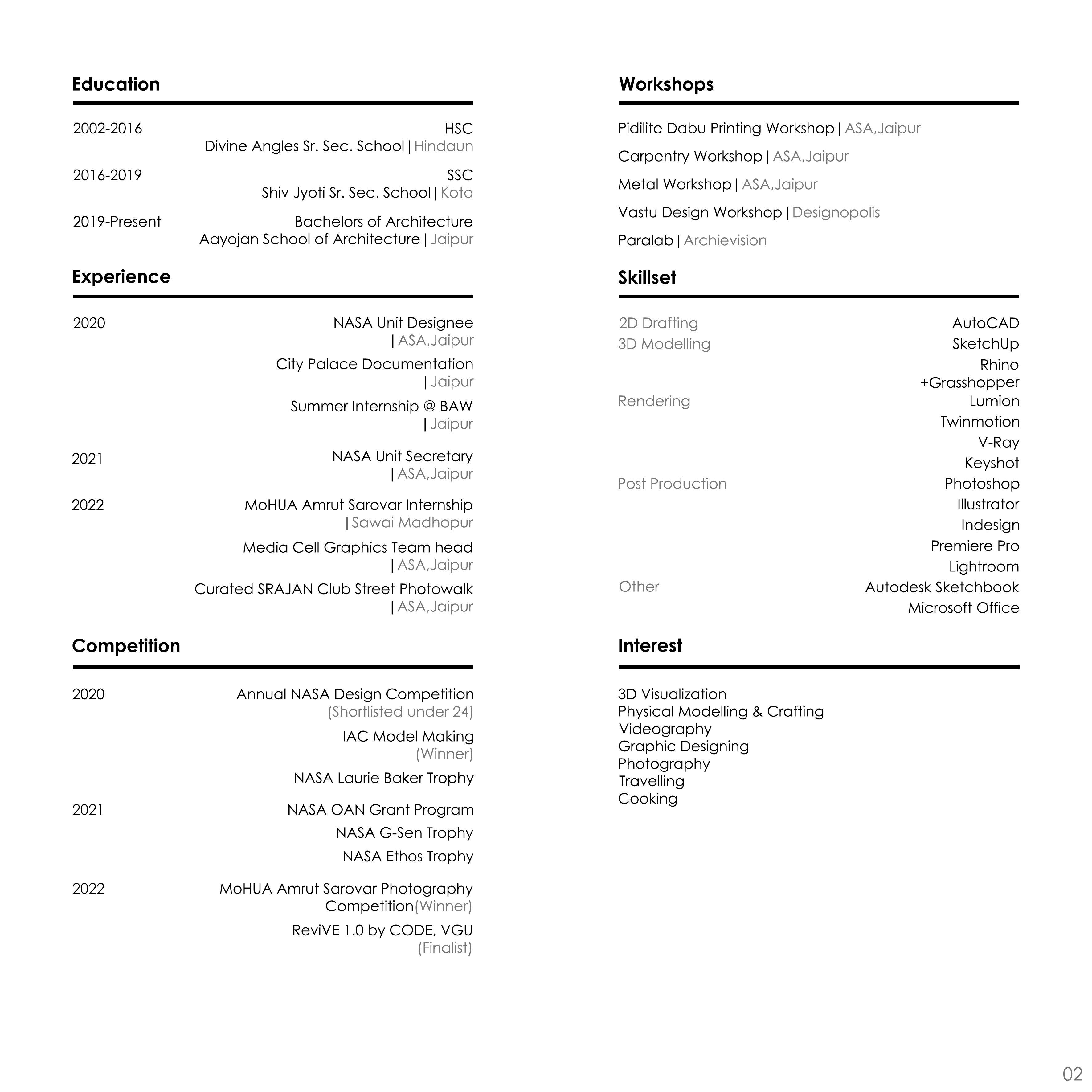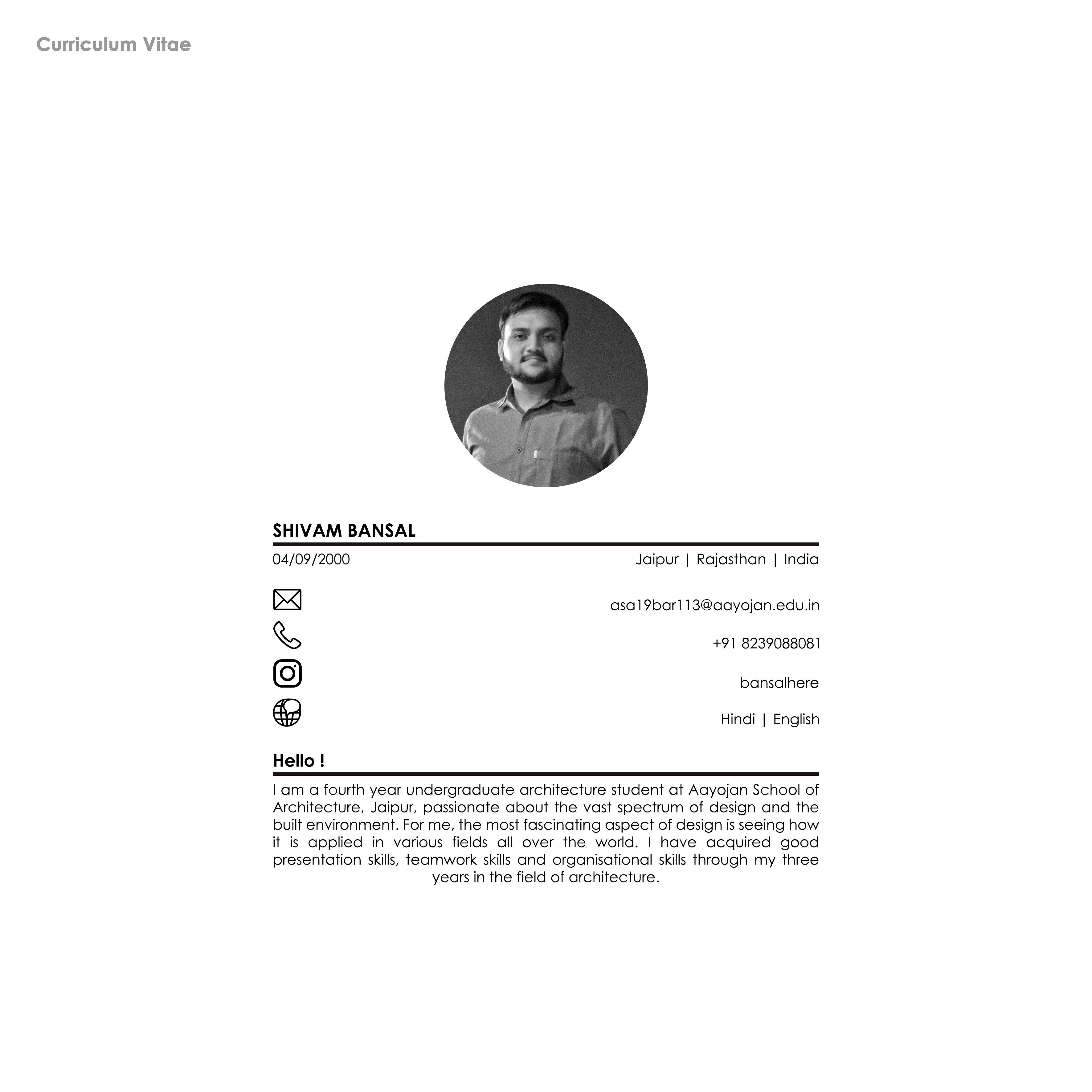 I am a fourth-year undergraduate architecture student at Aayojan School of Architecture, Jaipur, passionate about the vast spectrum of design and the built environment. For me, the most fascinating aspect of the design is seeing how it is applied in various fields all over the world. I have acquired good presentation skills, teamwork skills, and organizational skills through my three years in the field of architecture.