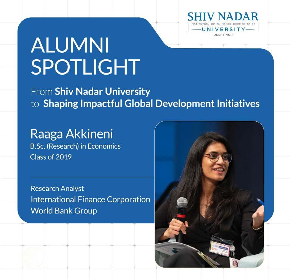 S. Raaga Akkineni is a Research Analyst at the International Finance Corporation (World Bank Group). A graduate of Shiv Nadar University, in the class of 2019, Raaga earned her bachelor’s in economics. After completing her Master’s from New