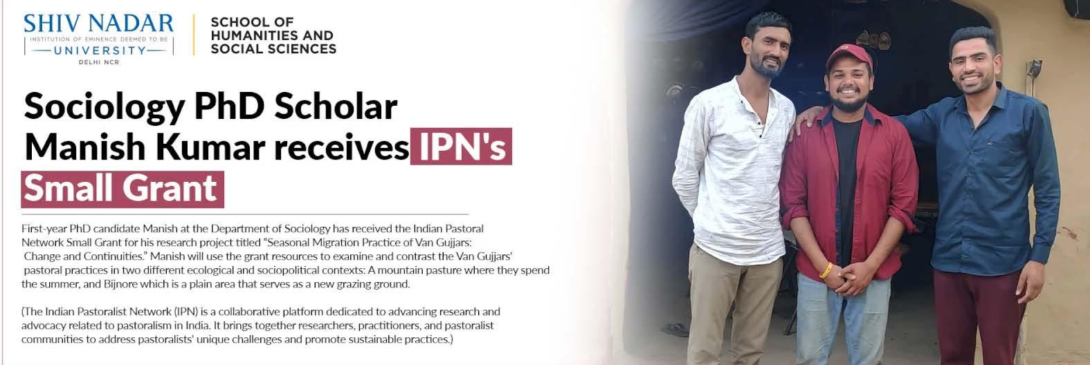 Sociology PhD Scholar Manish Kumar receives IPN’s Small Grant