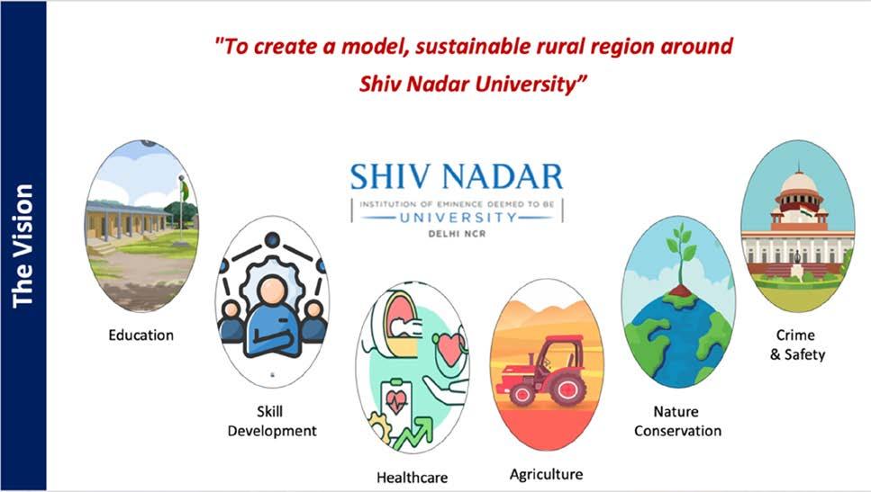 has assumed a central role in the Dadri Development Project, a transformative initiative convened by the Shiv Nadar Foundation (SNF), a non-governmental organization. The project aims to create a “model sustainable rural community around Shiv Nadar University.” This commitment is shared by the university leadership, staff, and students and is instilled in the core of the University’s academic mission.