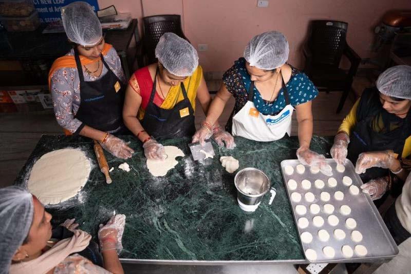 villages are trained to operate SHG-led community kitchens, equipping them with essential entrepreneurial skills. The sessions covered savings, credit linkages, budgeting, digital payments, and online food delivery platforms, enabling participants to develop practical kitchen management budget plans. This initiative fosters self-reliance and