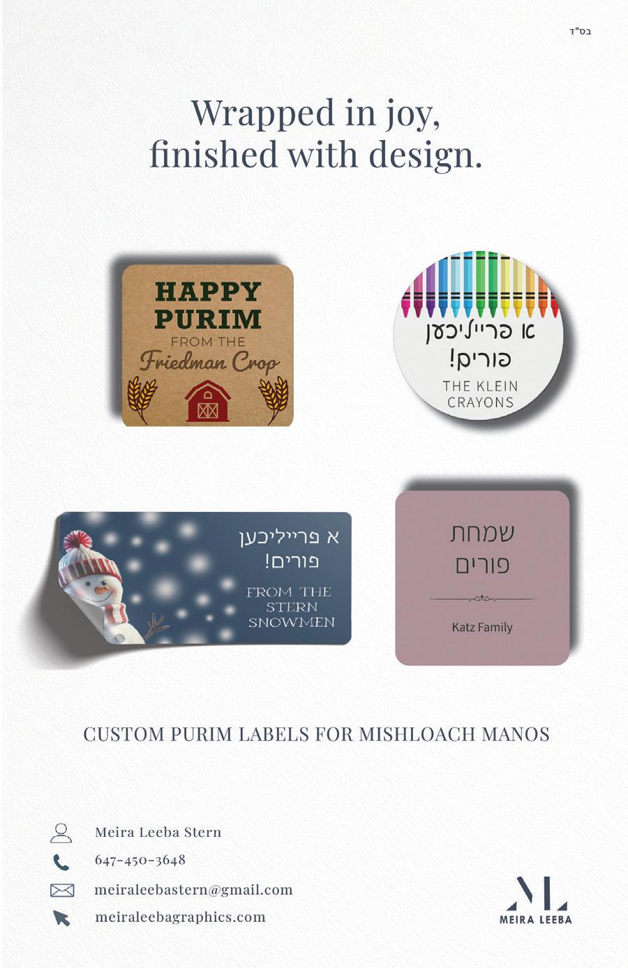 Beautifully Illustrated Tribute Cards -available “in honour of” or “in memory of”. Proceeds go to Eim Habonim Smecha, an organization for over 500 single parent families in Israel. Call 416-638-3366.