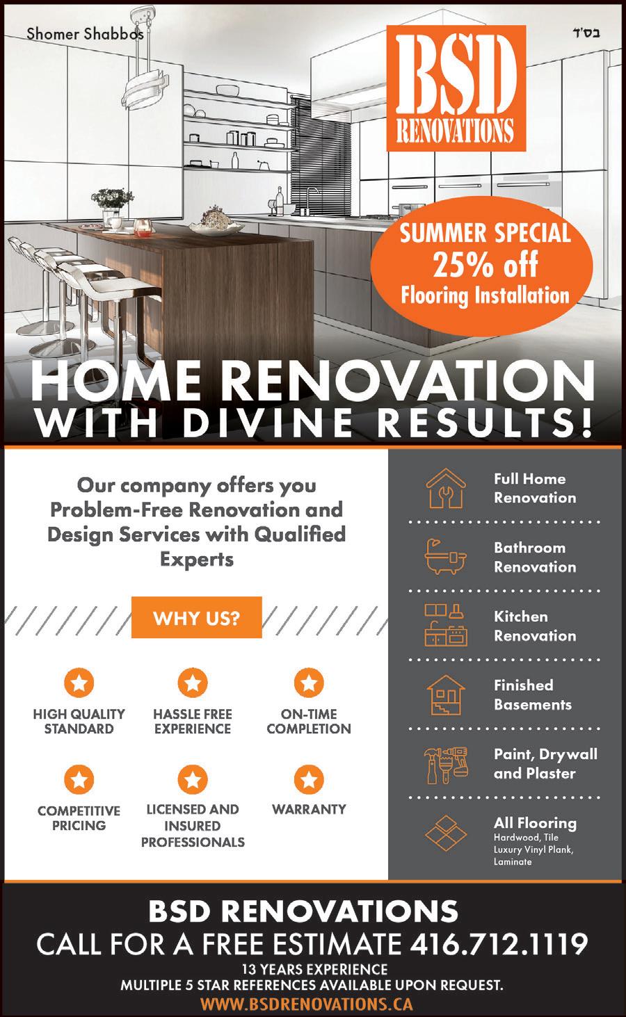 + powder room on main floor, private elavator, large patio for sukkah Flexible star t date Non-smoker. Text Alan 416-371-5007 or call 416-221-2541