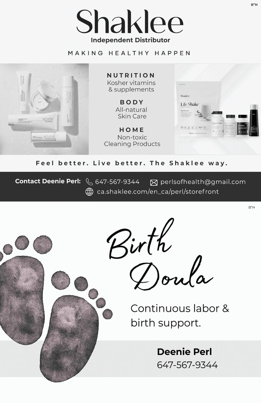Doula Gemach - get prenatal, labour & postpartum support for reassurance, comfort & guidance as well as positive birth experience. Have a fulfilling birth memory while paying what you can for a trained/experienced doula. Please call Batsheva at 647-766-5425. lʼilui nishmas Tamara Taube bas Ephraim.