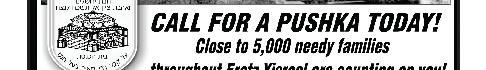Urgently seeking a kidney donor for a young kallah currently on dialysis. Please call Renewal Canada, 416-628-7633 for more information. Your gift could be the ultimate mitzvah of saving a life.