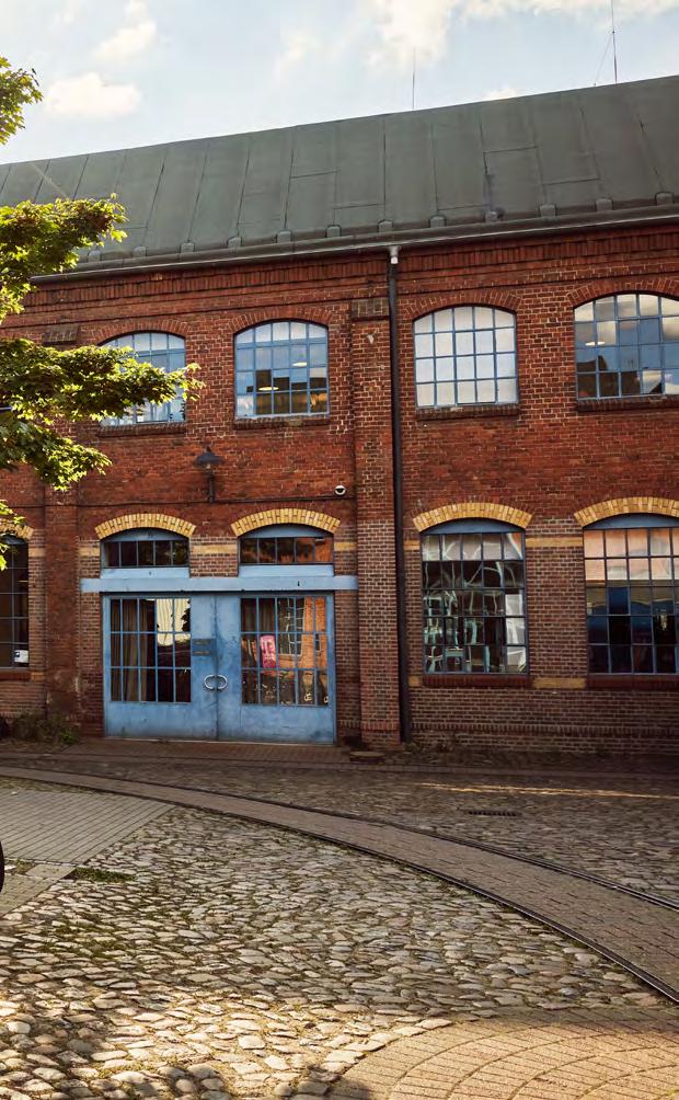 Direkt nebenan, auf der anderen Seite des kopfsteingepflasterten Hofes, auf dem noch die Schienen einer alten Industriebahn verlaufen, mietete der Verlag vor einigen Jahren ein weiteres Werksgebäude an. Die einstige Dreherei wurde 2021 so umgebaut, dass sie den Bedürfnissen des modernen, seit 1980 zur schwedischen Bonnier Mediengruppe gehörenden Carlsen Verlags entspricht. Für den Entwurf der innovativen Büroräume im historischen Bestand erhielt das Berliner Architekturbüro de Winder 2022 den Award