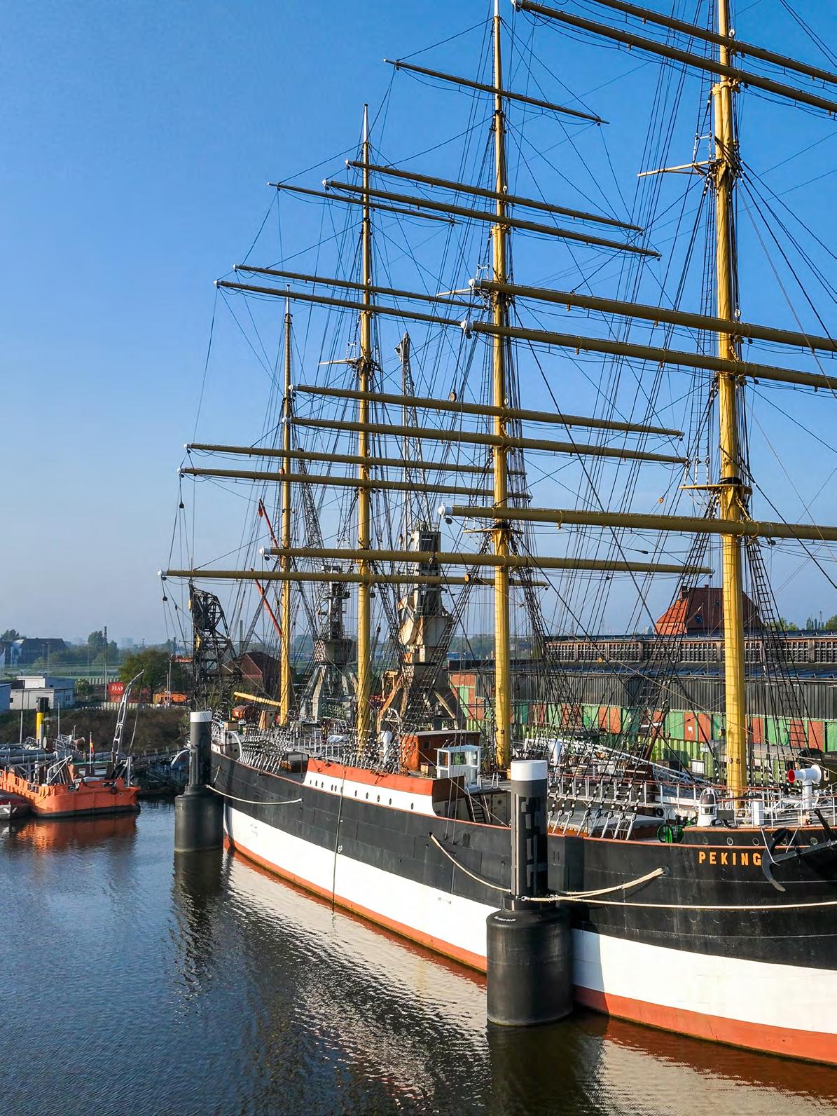 Viermastbark PEKING, äußerst schnellen Frachtseglern, die bis ins 20. Jahrhundert hinein Salpeter aus Chile nach Europa transportierten, wurde F. Laeisz weltbekannt.