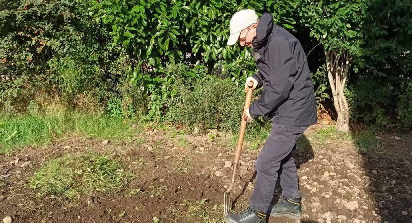 Doreen Stewart, now in her eighties, volunteered for over thirty years to conserve. Her experience working with Greenspace, Natural Scottish heritage and other groups meant she had other friends that enjoyed a project. Alistair and Gary joined later in 2023, and we worked on de-stoned and turning over the soil before any plants could be considered. The lads came weekly from March- October working hard on clearing heavy grasses and we had several bucket loads of boulders and stones. A cuppa and fine cake helped to keep them going.