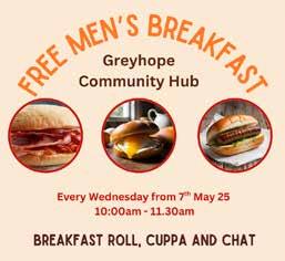 In May we started the Greyhope Men’s Breakfast every Wednesday from 10.00am -11.30am - all men are welcome to pop in. A space for men to chat and we plan to have some Boccia sessions over the summer, why not come along and give it try.
