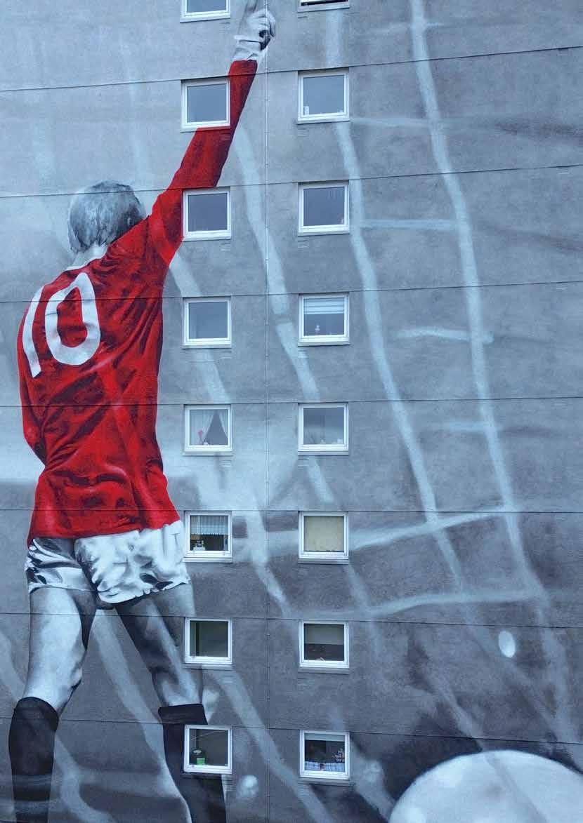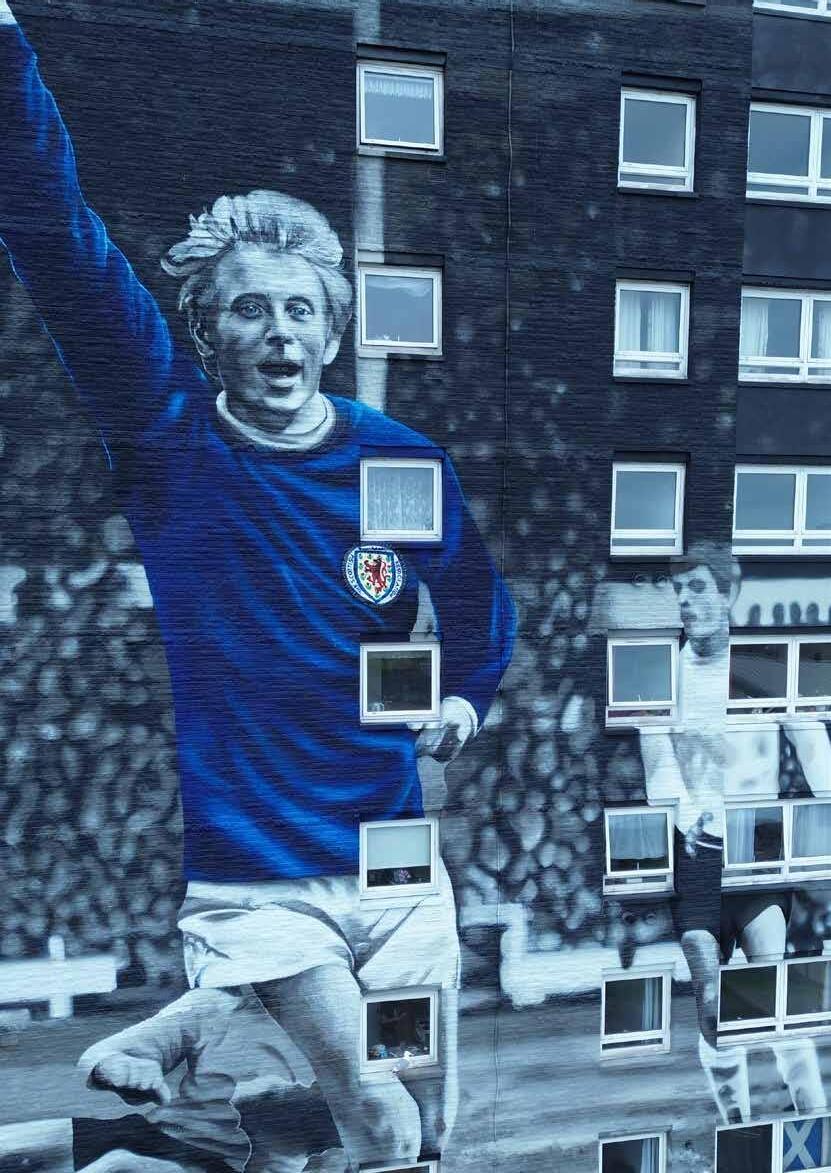 Aten-year-old boy looked up at the new mural on Clifton Court. ‘Is that Ronaldo?’ he asked his father. ‘No son.’ he answered, ‘that’s Denis Law.’ ‘Who’s he?’