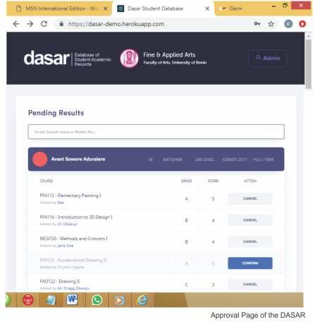 5. Essentially, the ADAVA, ADAVA App and DASAR have become a reference points and templates for other Departments in the University of Benin, Benin City and beyond.