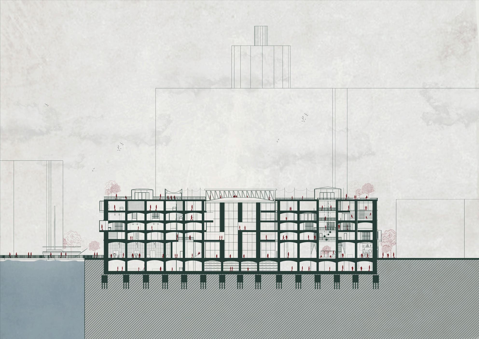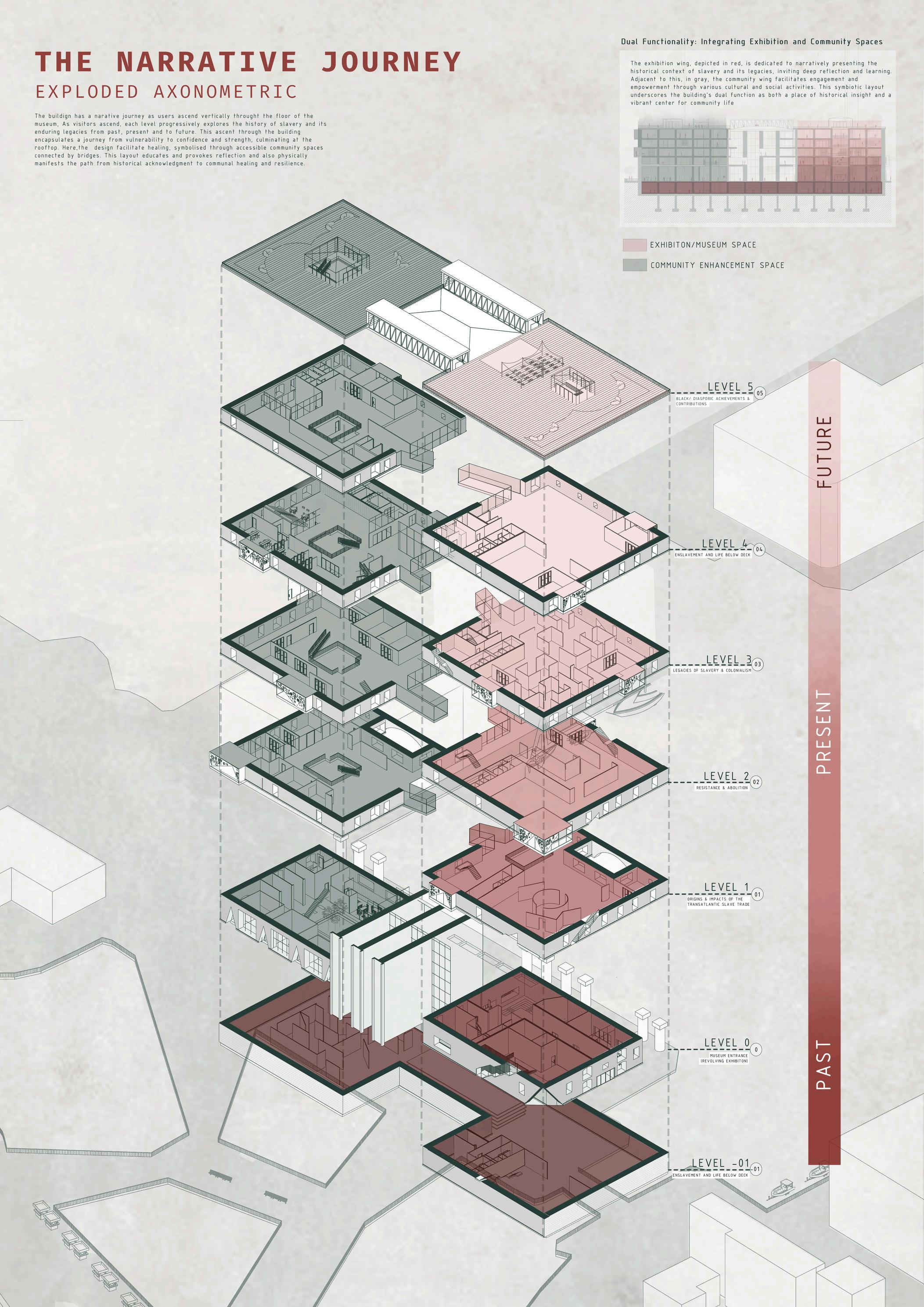 Beyond the Dock re magines Liverpoo ’s International S avery Museum to address the city's ro e in the transatlant c slave trade wh le empowering the Black diaspora The design combines adaptive reuse with commun ty spaces, including theatre dance studios, and immersive exhibitions to foster education, heal ng, and cultura expression