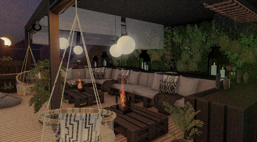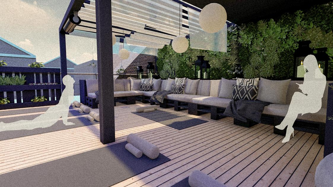 The Rooftop Redesign for Adore Group in Liverpool transformed a derelict space into a versatile environment catering to various activ ties Designed with flex bility in mind, the space supports soc al gatherings, yoga, meditation meetings, and relaxation. Incorporating biophilic design, the rooftop features plants, a water fountain, and key skyline v ews, providing a calm, sensory escape from the office environment and promoting a balanced work-life atmosphere