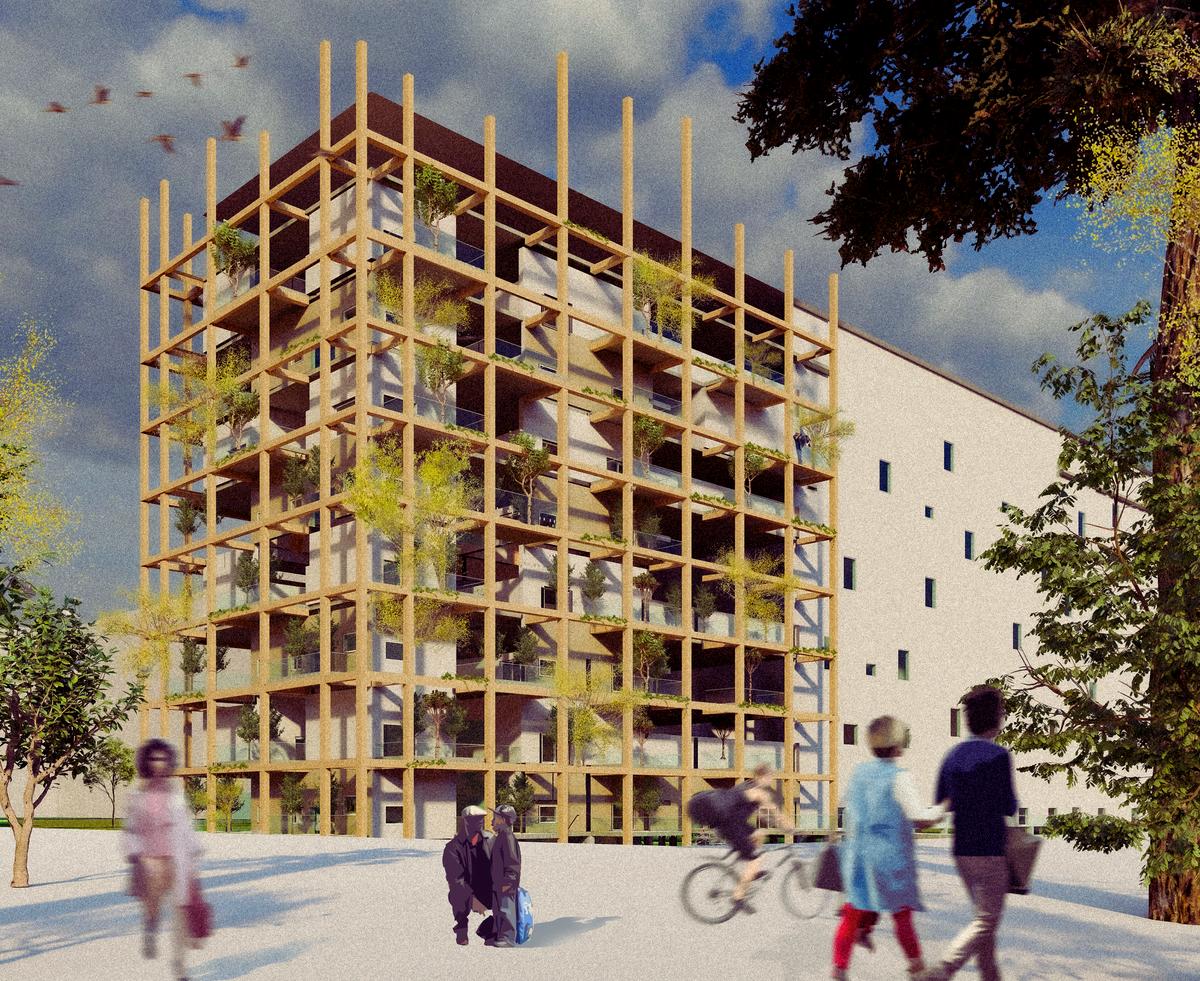 This approach addresses hous ng shortages while promoting sustainability and community interaction, offering a solution for urban regenerat on and social housing needs