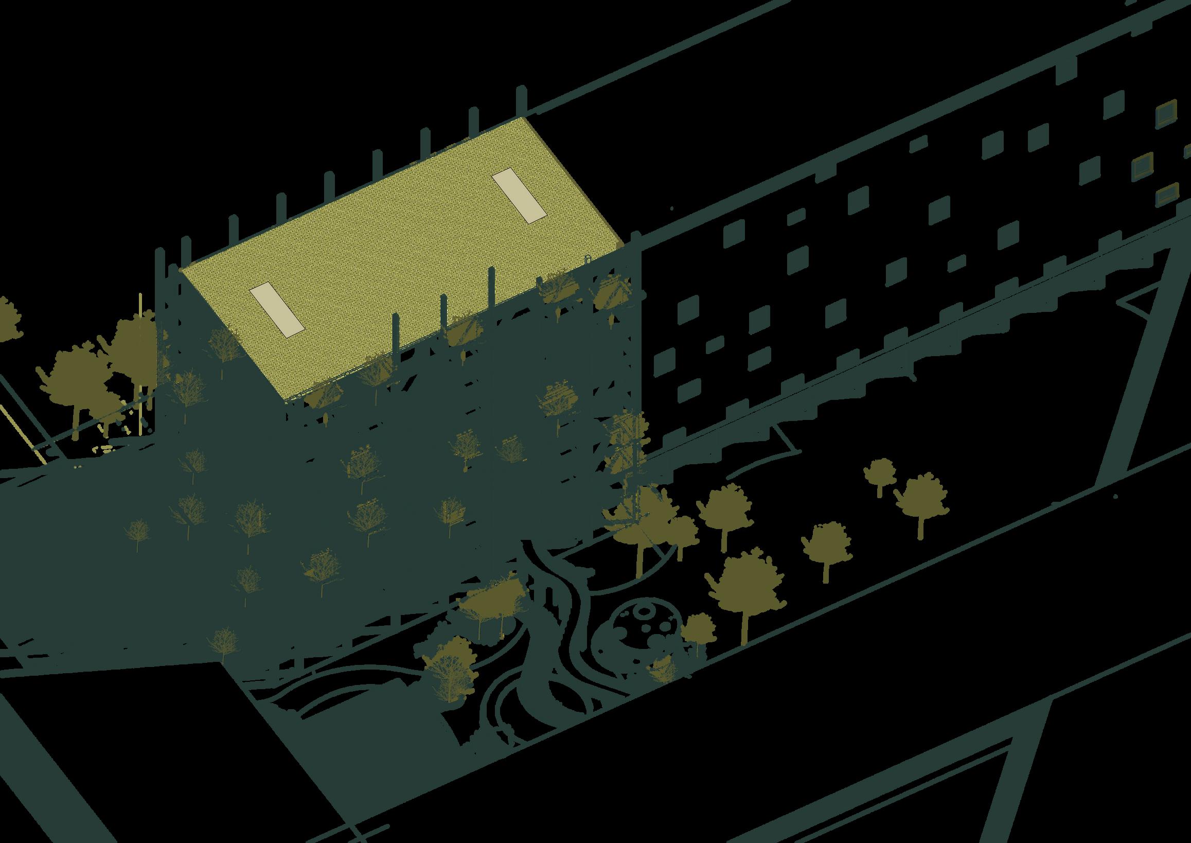 The Parasitic Habitat is a social housing project that adapts parasitic architecture to Le Corbusier s Ville Radieuse, adding affordable living spaces to existing structures A modular housing system attaches to bu ldings using a lightweight steel frame and integrates vertical gardens creating a harmonious relationship between the old and the new