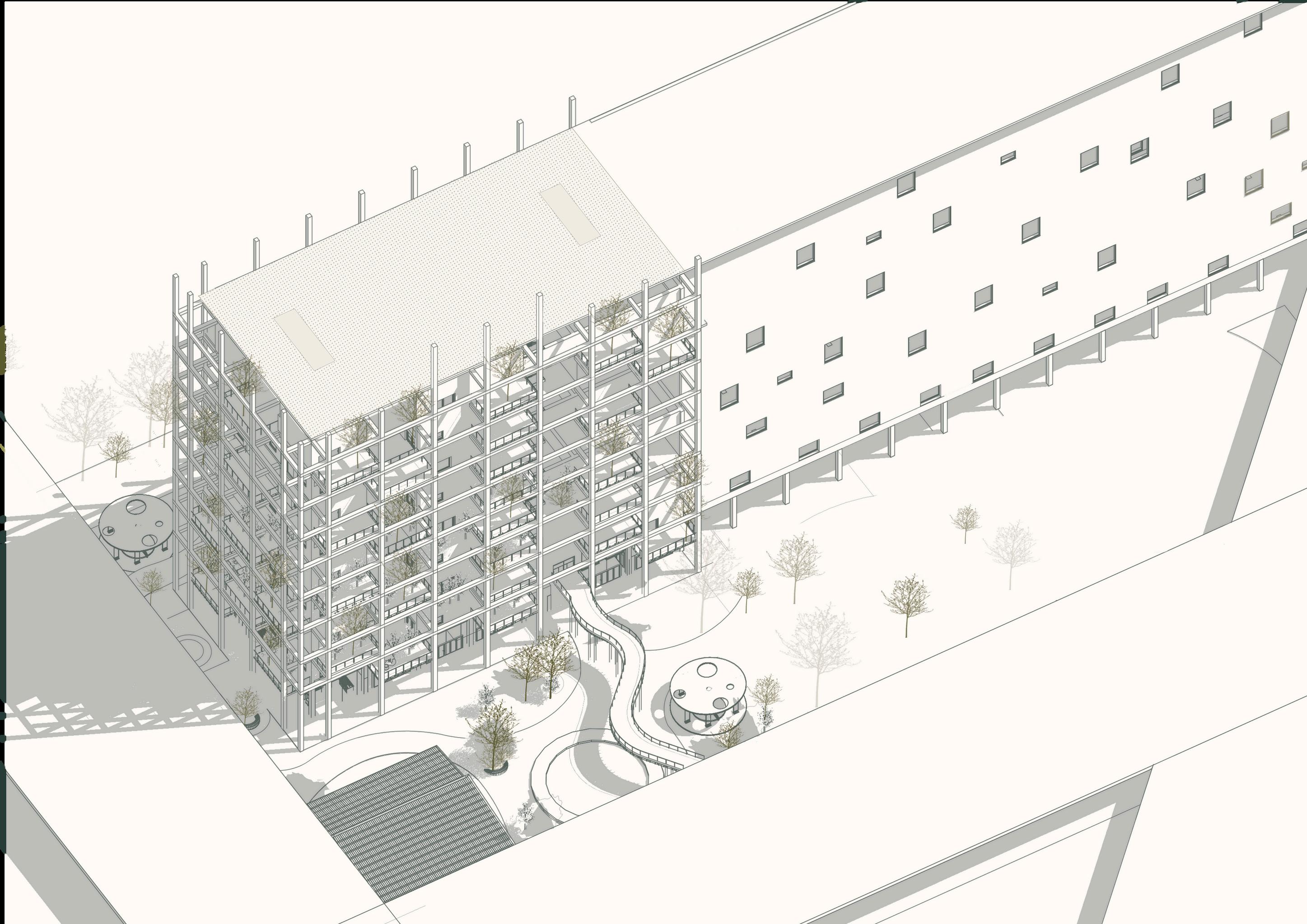 This approach addresses hous ng shortages while promoting sustainability and community interaction, offering a solut on for urban regeneration and social housing needs