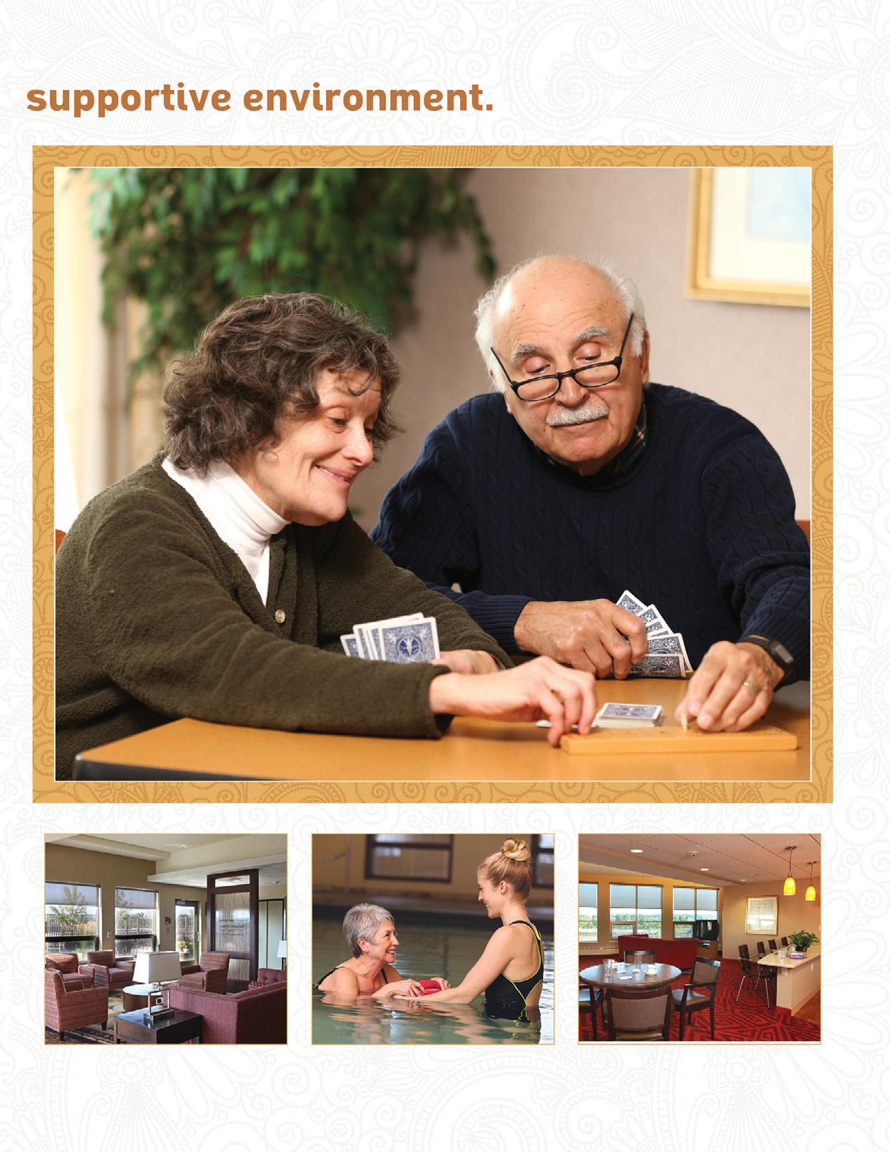 Skilled nursing, assisted living, memory care, respite care, home care and hospice, HUD senior housing, and vitality and aquatics center