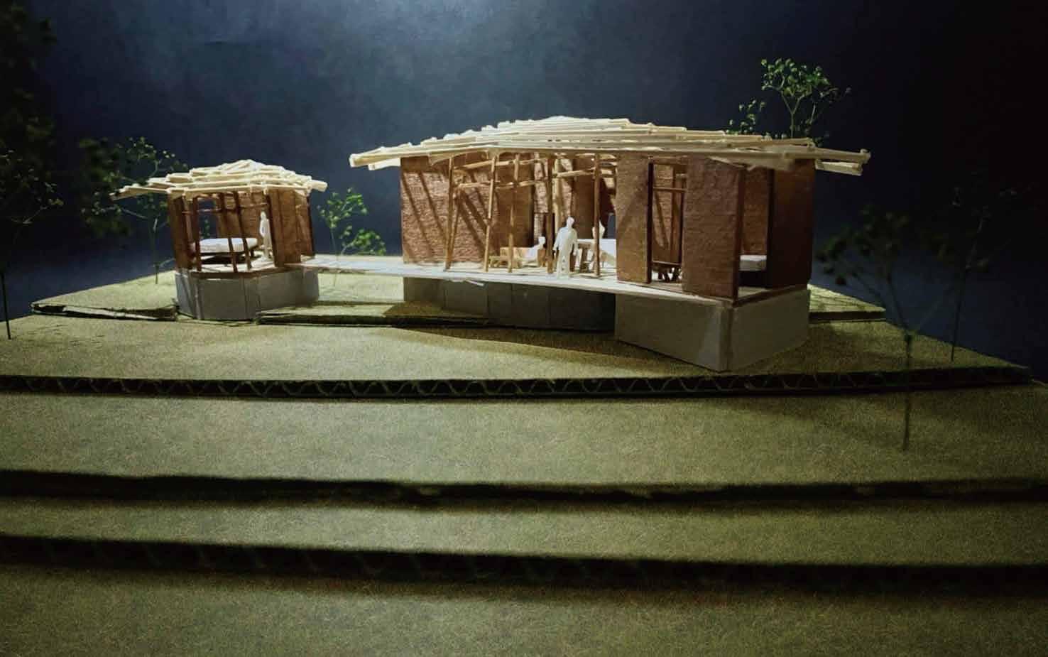 平群町の石と農業を融合させ、地域の特徴である畦道のような道の駅を提案する。