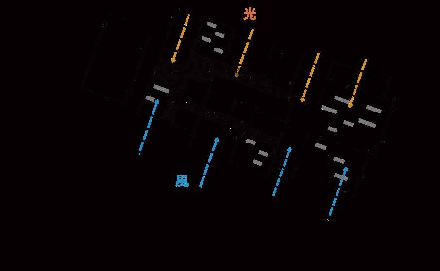 ストリートを真ん中に配置し、所要室と渡り廊下を相互貫入 させて配置する。