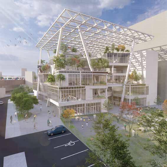ボリュームのズレ 周辺環境の要素をピックアップし、商店街らしさと周辺環境の植生など それらの要素を組み合わせ、新たな庁舎に挿入することで、 様々なモノがひしめき合い、人と人との交流が盛んに行われる 庁舎が町と呼応する集合体となり、周囲環境をシームレスに繋ぐ。