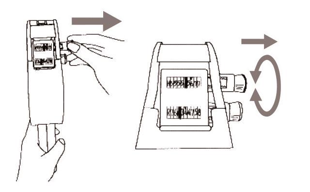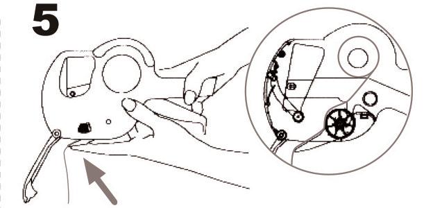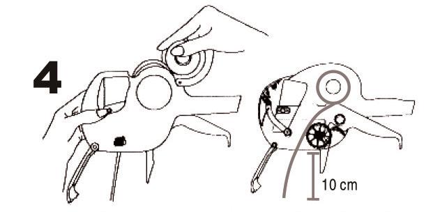 Insert label paper to the inside of the gun and bring it out of the base until about 10cm of the label paper comes out.