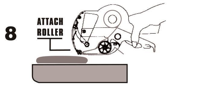 Pull the lever of the gun three times to feed the labels. Attach labels onto your desired position of the product by sliding attach roller onto the product.