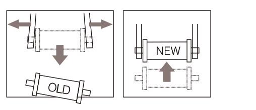 Adjust the label paper so that the holes of the paper are folded over juts of the feed roller.