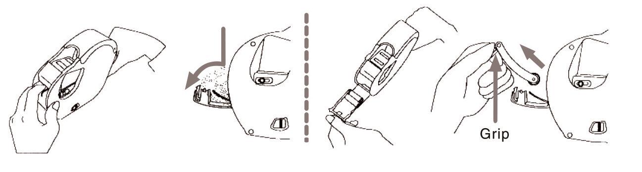 To open the base cover, pull back opening buttons that are located on both sides of the gun.