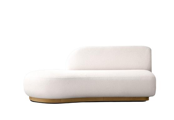 Clean lines and subtle curved details define a luxury contemporary collection that’s stocked in outdoor Italian bouclé — the first of its kind in the marketplace.