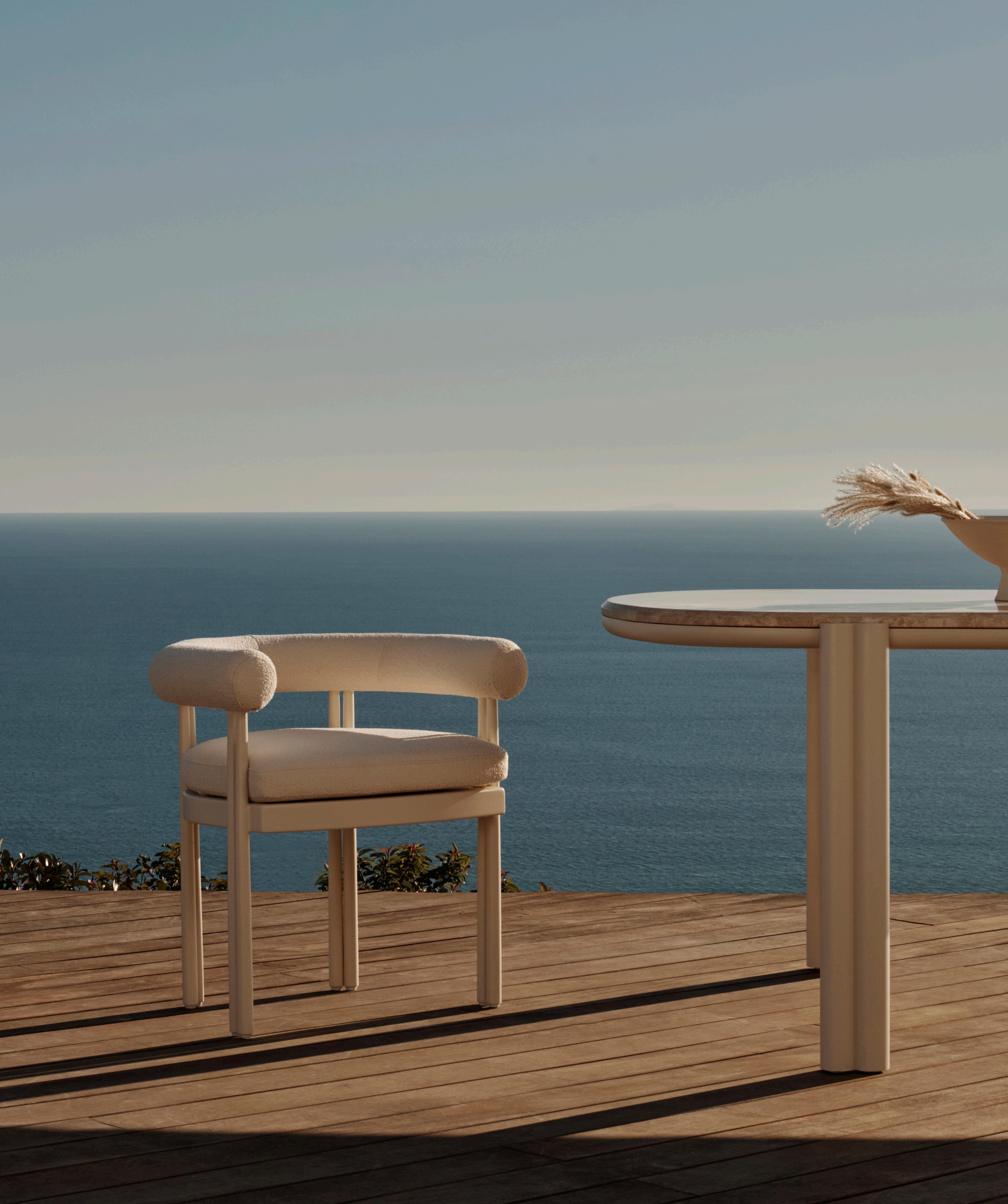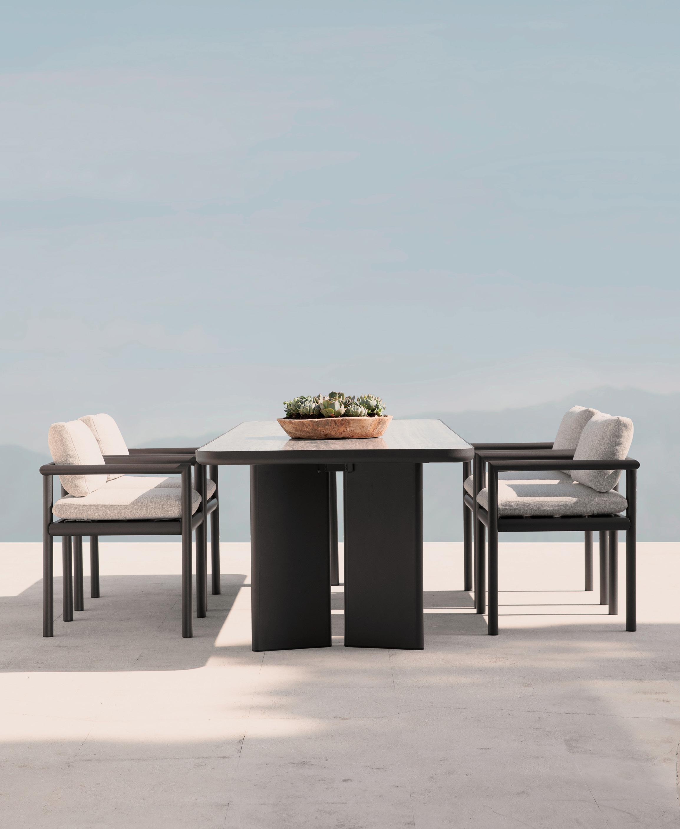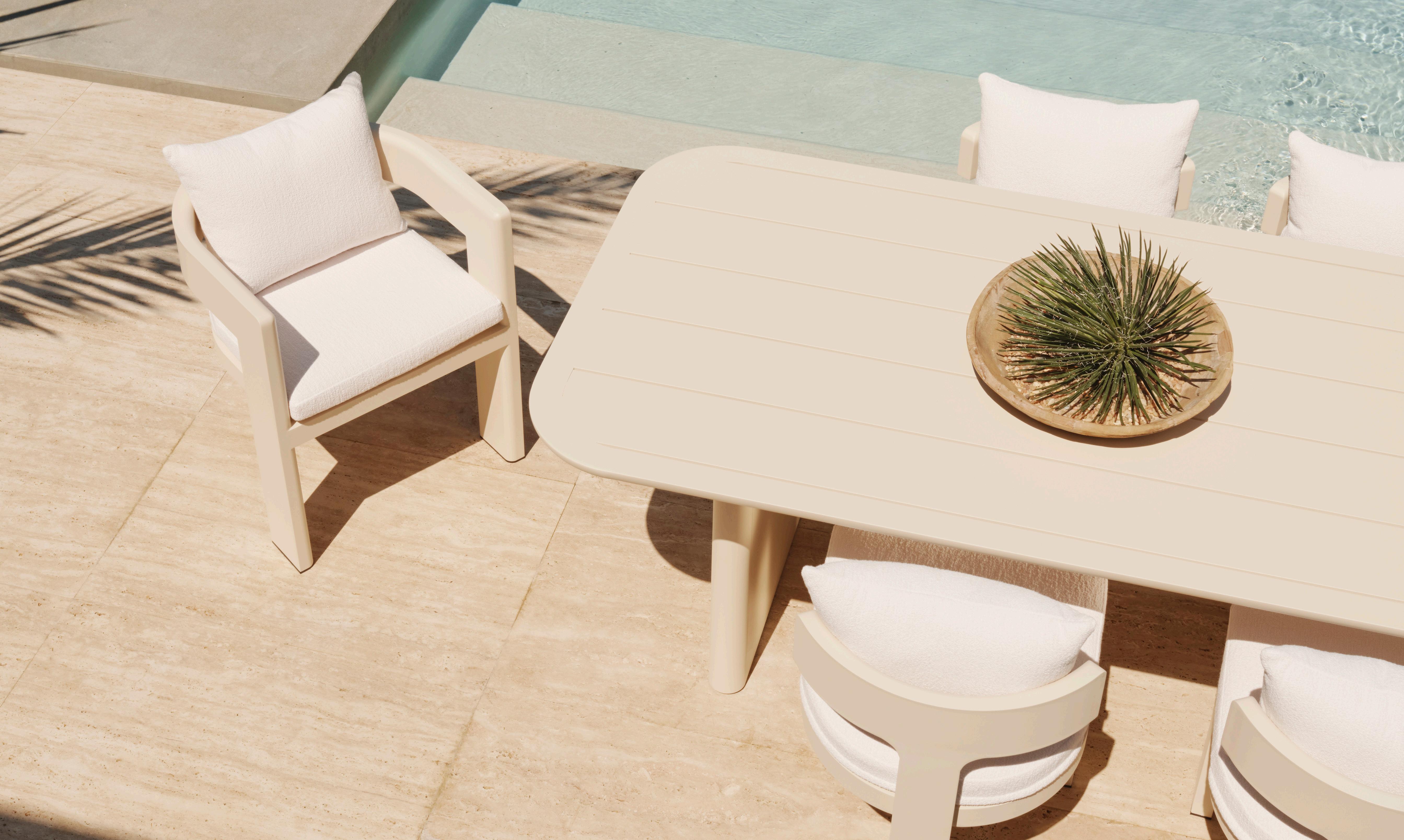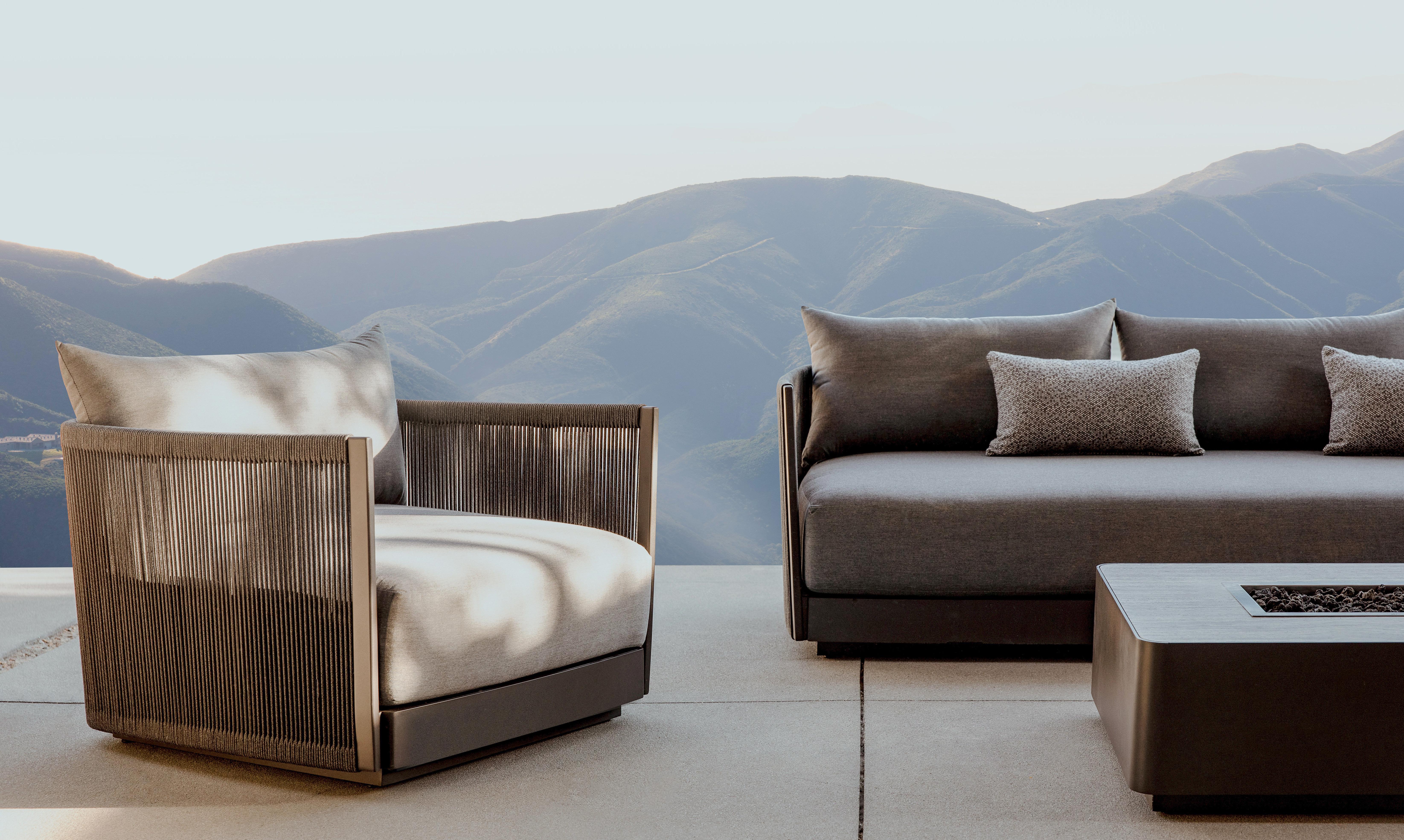 Organically-inspired signature curves and luxe outdoor upholstery showcase the traditions of fine Italian tailoring refined for a natural setting.
