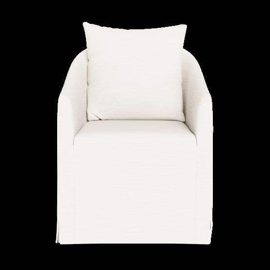 B. Cove Teak Armless Dining Chair Shown in Natural Teak Frame and Panama Blanco Fabric.