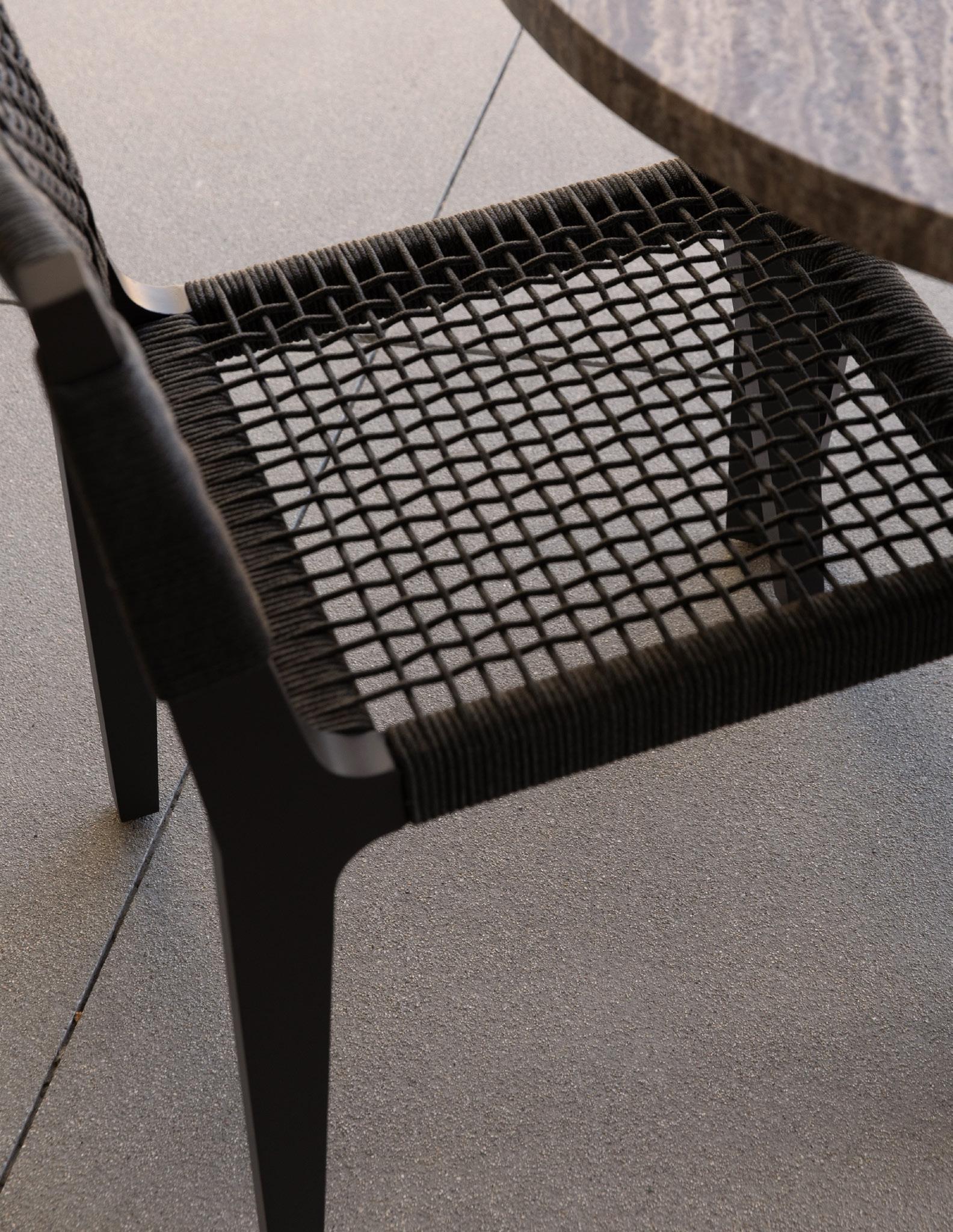 B. Hamilton Lounge Chair Shown in Aluminum Asteroid Frame, Dark Rope and Cast Slate Fabric.
