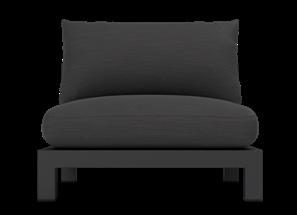 A. Vaucluse 3 Seat Sofa Shown in Aluminum Asteroid Frame and Sunbrella Cast Slate Fabric.
