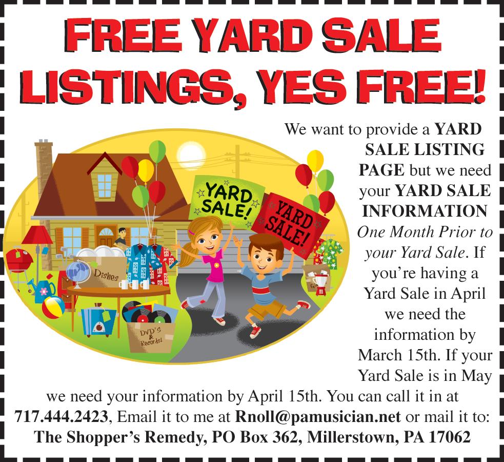 Call in your FREE CLASSIFIED today... 717.444.2423