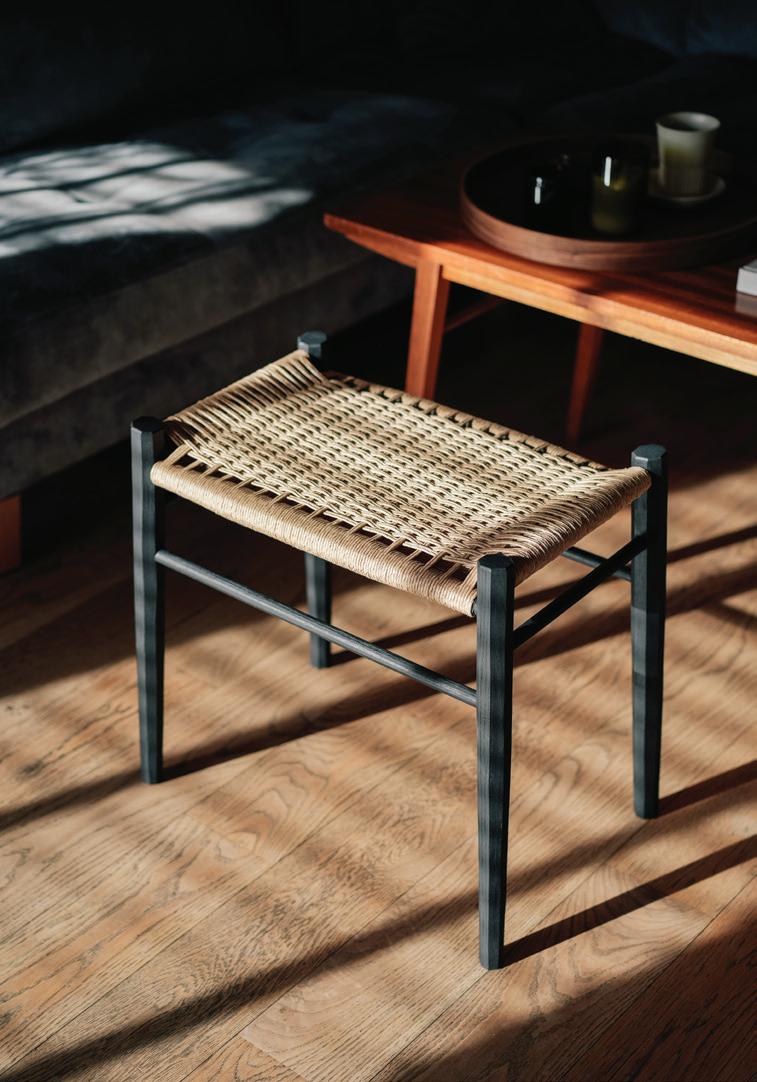 The “Sahin” stool is a light and durable seat that finds its home as a hallway bench, bedroom night table or spare chair in the kitchen. All the wooden parts of the stool are faceted in the wet wood stage with a drawknife. The Sahin is made using a green woodworking technique that joins the wet and very dry details with a tap and no need for artificial glues or screws. Made with respect for the material, using only hand tools, carefully selecting and felling trees and caring for the environment. The seating pad is hand woven from durable and natural paper cord. The ashwood construction is finished off with oil wax and milk paint.