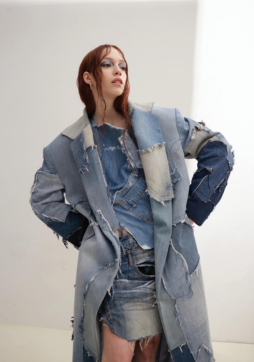 Sandra is a multidisciplinary designer whose practice redefines the possibilities of denim transformation. Through different methods she arrived at a new opportunity for one unexpected texture. Unraveled threads from ripping up old jeans come together in a delicate fabric that carries both the fortitude of workwear and the ethereal lightness of feathery lace, a true testament to the enduring power of sustainable design. Through Sandra’s transformative vision “Threads of Transformation”, upcycled denim emerges as more than just a material; it becomes a symbol of possibility, where sustainability, innovation, and beauty converge to shape the future of fashion.
