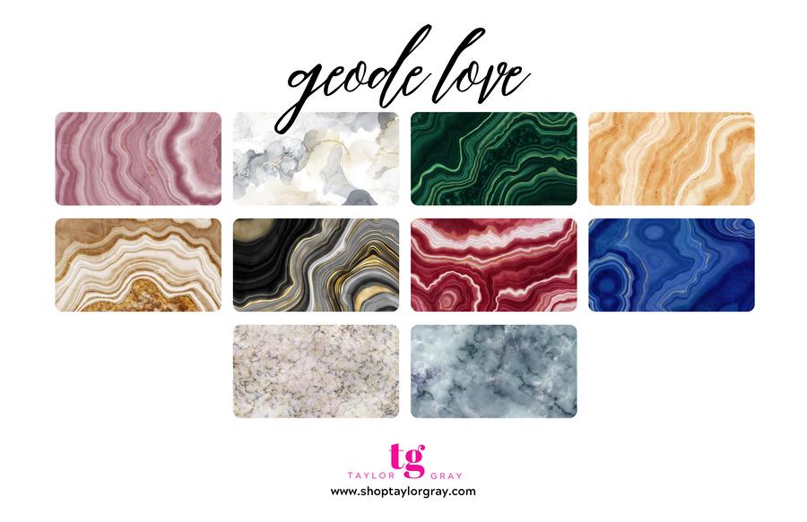 The gentle swirls of nature are apparent in the Geode Love insert set The set includes agate and marble images ranging from beautiful caramel tones to rich jewel tones This set can stand alone and can be used as a decorative element in the home