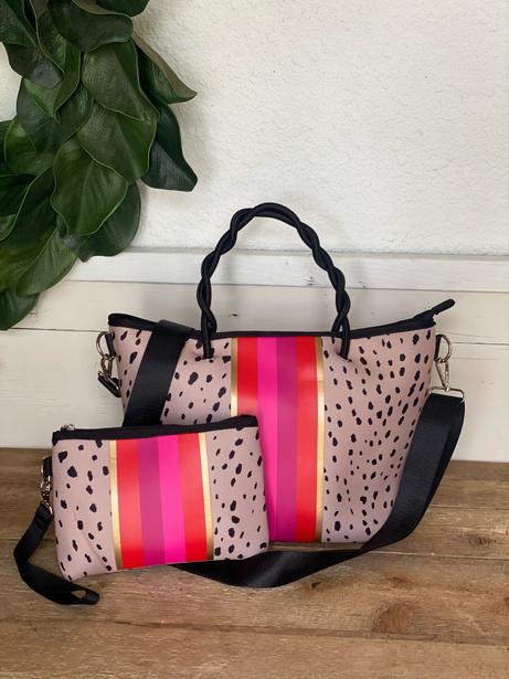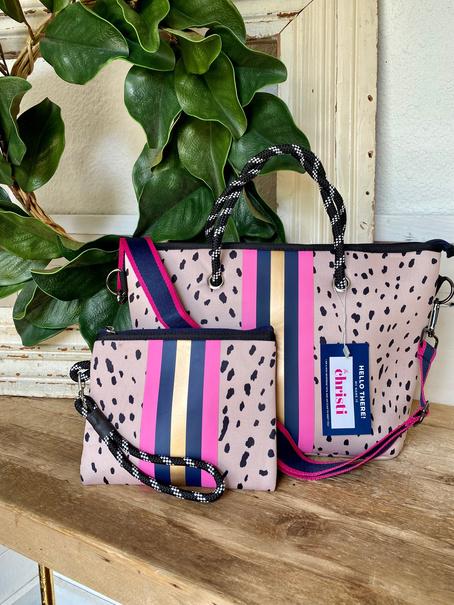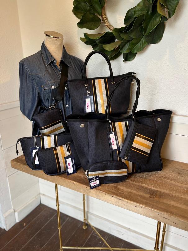 Our adjustable guitar straps are the perfect addition to your Emma Gameday or tote. They are an easy way of adding a pop of color to any purse and all have metal hardware. The leopard collection is reversable with rich caramel colors as the base and hints of color.