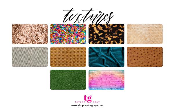 Herringbone, candy sprinkles, velvet, tortoise shell you name it, it is featured in the "Textures" insert set This set is such a great way to get a totally different look with your tray You can transition from classic tortoise shell, to gameday turf and back to crushed rose gold foil all within one insert set!
