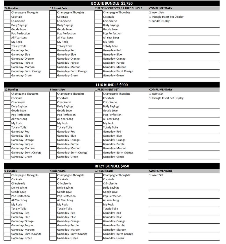 Our variety of collections allow our wholesaler family to order a wide range of products all through one source Please know that I design and manufacture each collection. I know each of you have a choice and am thankful for your support and trust (Opening order is $250 and reorder is $50 )