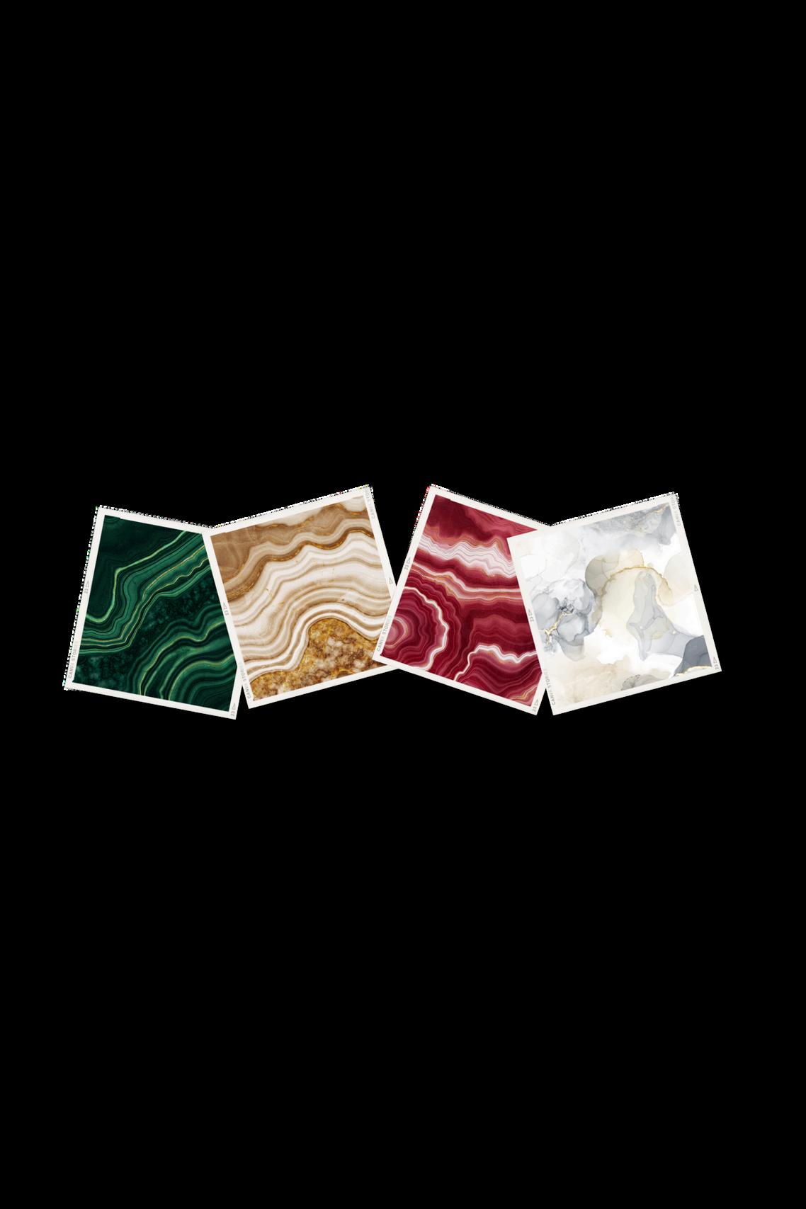 The gentle swirls of nature are apparent in the Geode Love insert set. The set includes agate and marble images ranging from beautiful caramel tones to rich jewel tones. This set can stand alone and can be used as a decorative element in the home.