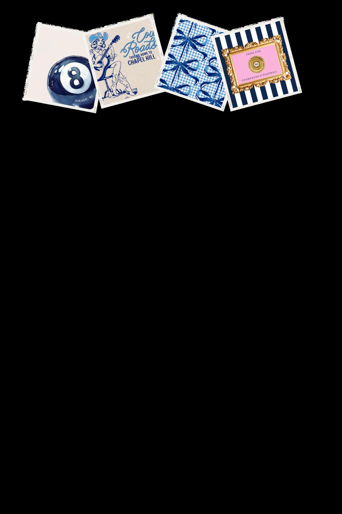 Welcome to Club Mahj! Mahjong is trending and we love that this insert set can help complete your store’s mahjong story. The set will take you from serving margs while you and your friends play all the way to wishing you a Very Merry Mahj with the Christmas insert. Dot! Crack! Bam!