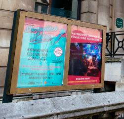 You can advertise your event by fixing up to two PVC banners to our pillars and using our large format backlit poster display points.