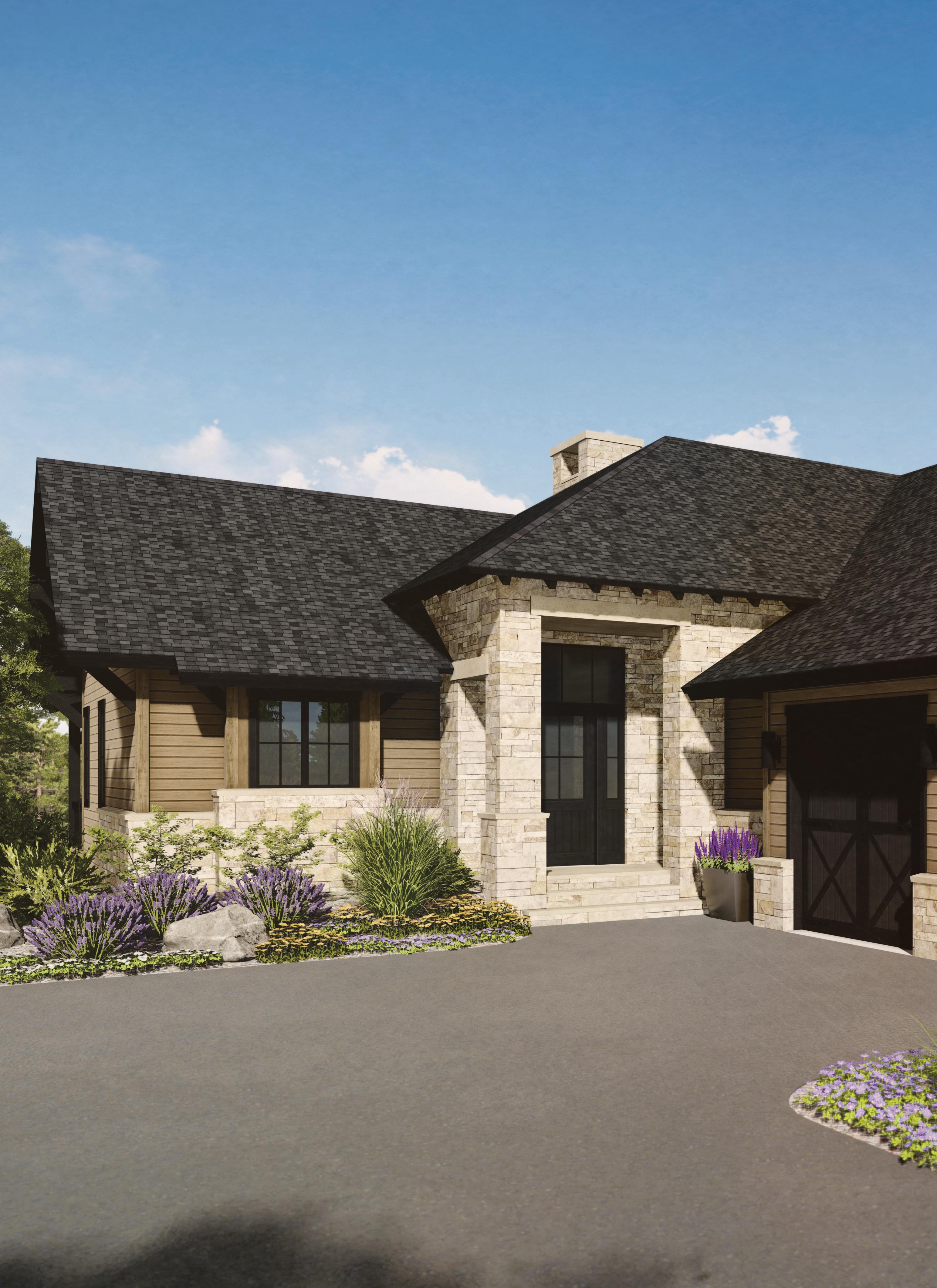 The Bentgrass’ main level provides a sophisticated layout that affords homeowners a light-filled sanctuary, with a vast great room surrounded by spaces that can provide both privacy and sociability. The state-of-the-art kitchen flows seamlessly into a dining area that offers indoor and outdoor venues, depending on the time of year. When nighttime calls, retreat to the primary suite for a well-deserved respite. The mudroom, laundry room and two-car garage ensure that all the trappings of your wilderness pursuits stay contained to one area of the home.