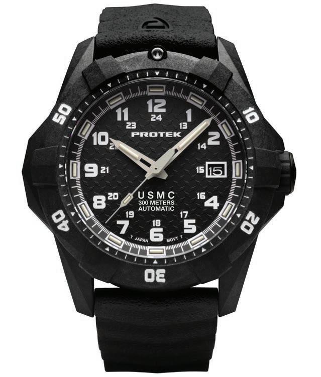ProTek Watch has expanded its Official USMC Watch Collection with the addition of Seiko 24-jewel automatic movements in its Carbon Composite Case dive watches. This is the same workhorse movement found in many of Seiko’s great dive watches. The watch also has ProTek’s unsurpassed tritium illumination that glows for 25 years.