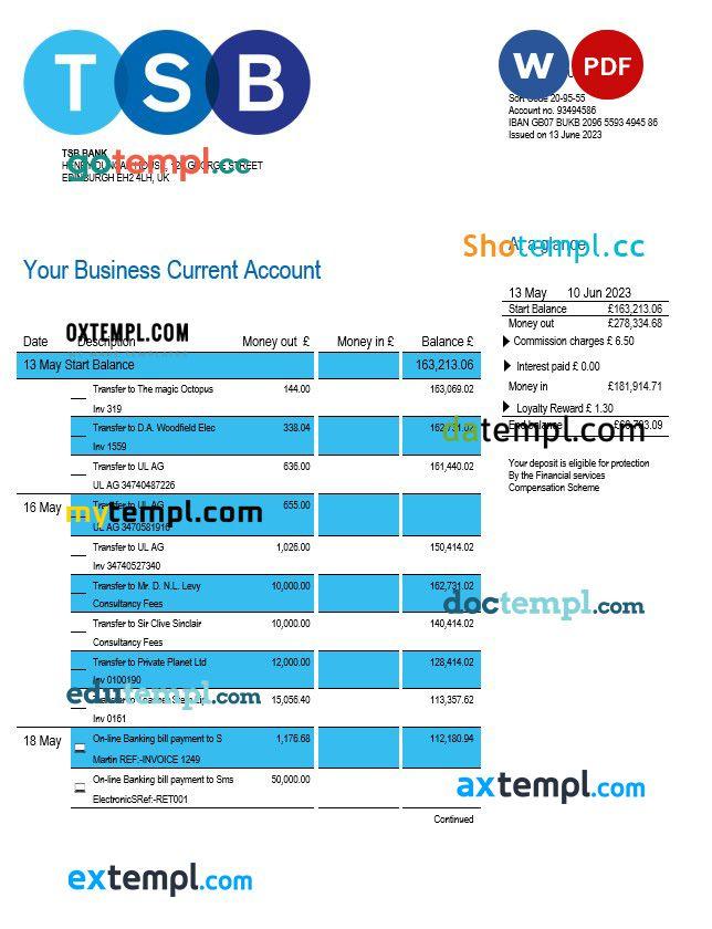 A business bank statement is a summary of all of your business transactions for a specified statement period. It includes an account summary and information about your bank, business, and bank account. A business bank statement includes an account summary, also known as a transaction history, which includes the following: