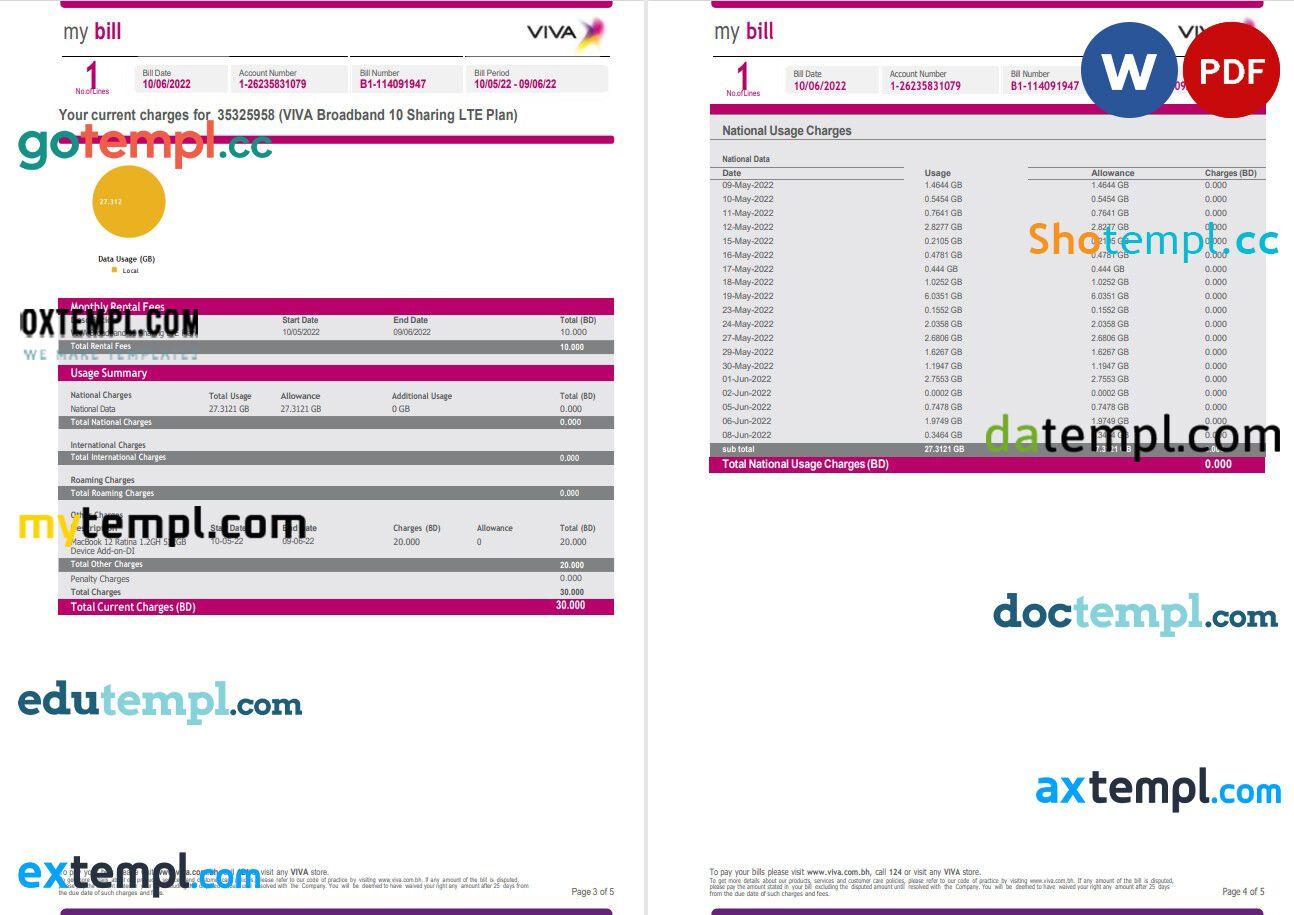 Like all our documents, Bahrain Viva my 5 pages utility bill sample is of high quality. The templates help you to prove your address where an address verification is required.